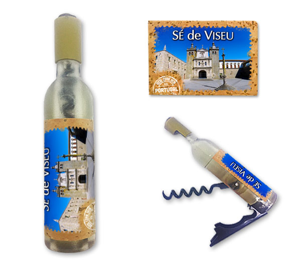 Magnetic in 11,5x2,5cm, bottle format, with capsule openers and corkscrews. Application of printed natural cork, in individual packaging.