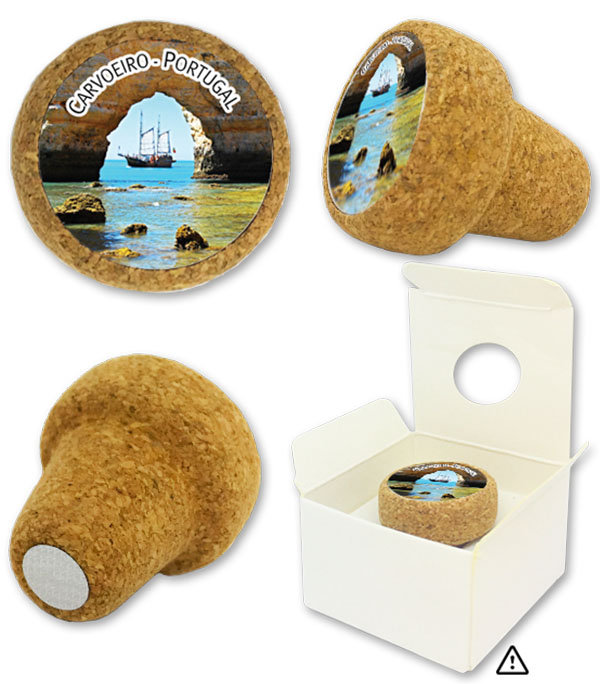 Magnetic cork stopper with metal plate illuation diam. 26mm. Presentation box not included.