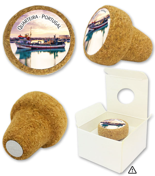 Magnetic cork stopper with metal plate illuation diam. 26mm. Presentation box not included.