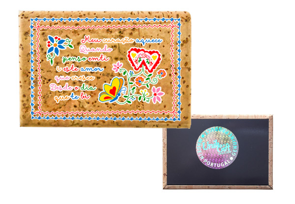 Typical theme of northern Portugal, characterized by misspelling poetry, bright colors and quotidian symbols. Magnetic with Portuguese natural cork finish, with high quality printing. Individual packaging and holographic seal "Made in Portugal".