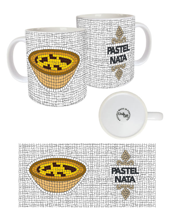 Portuguese symbols, reinterpreted in the shape of the typical Portuguese pavement. White Bright White Ceramic Mug, 11oz, 9.7cm x8.2cm diam. Without individual box.