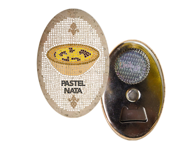 Portuguese symbols, reinterpreted in the shape of the typical Portuguese pavement. Magnetic oval, 60x90mm, with cork finish and high quality printing.