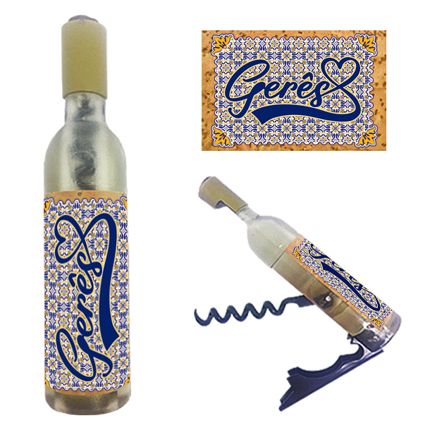 Magnetic in 11,5x2,5cm, bottle format, with capsule openers and corkscrews. Application of illustrated natural cork, in individual packaging.