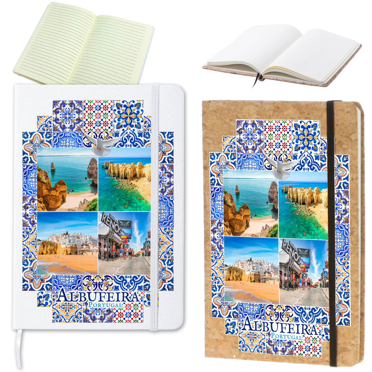 Notepad with hard cover. Notepad size 14 x 21 x 1.5 cm | 240 gr. , 80 sheets. Available with a textile or natural cork finish.
