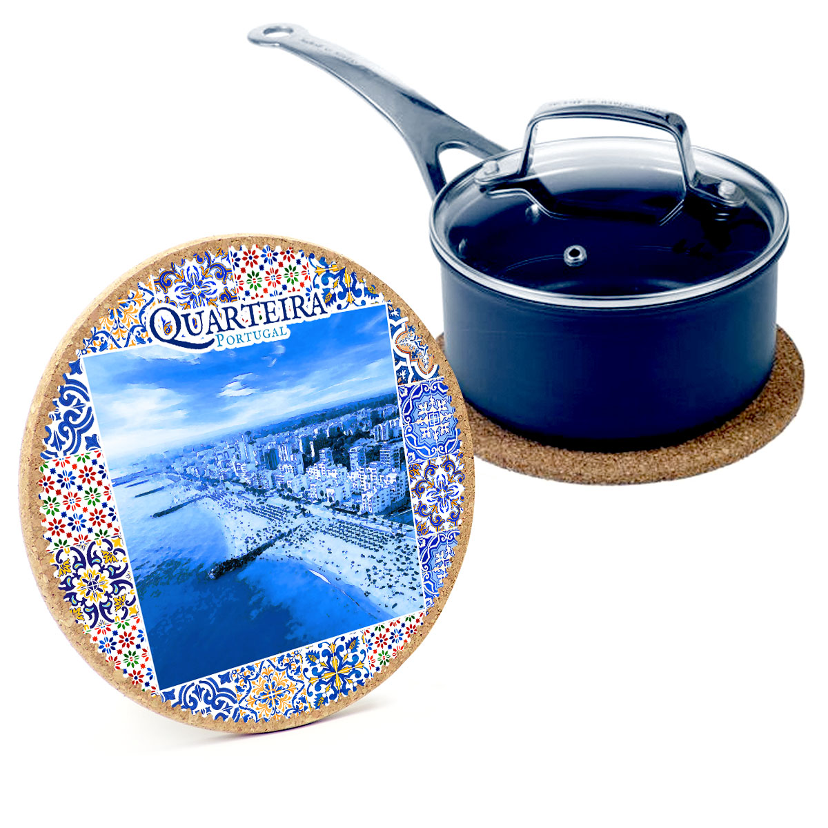 Round base for pans, in cork agglomerate of 195mm x 10mm, printed.