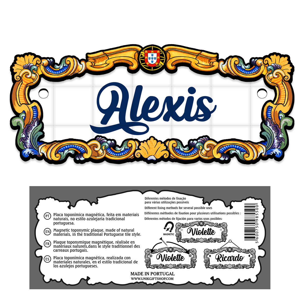 Magnetic toponymic plaque, made of natural materials, in the traditional Portuguese tile style, 14x6cm.