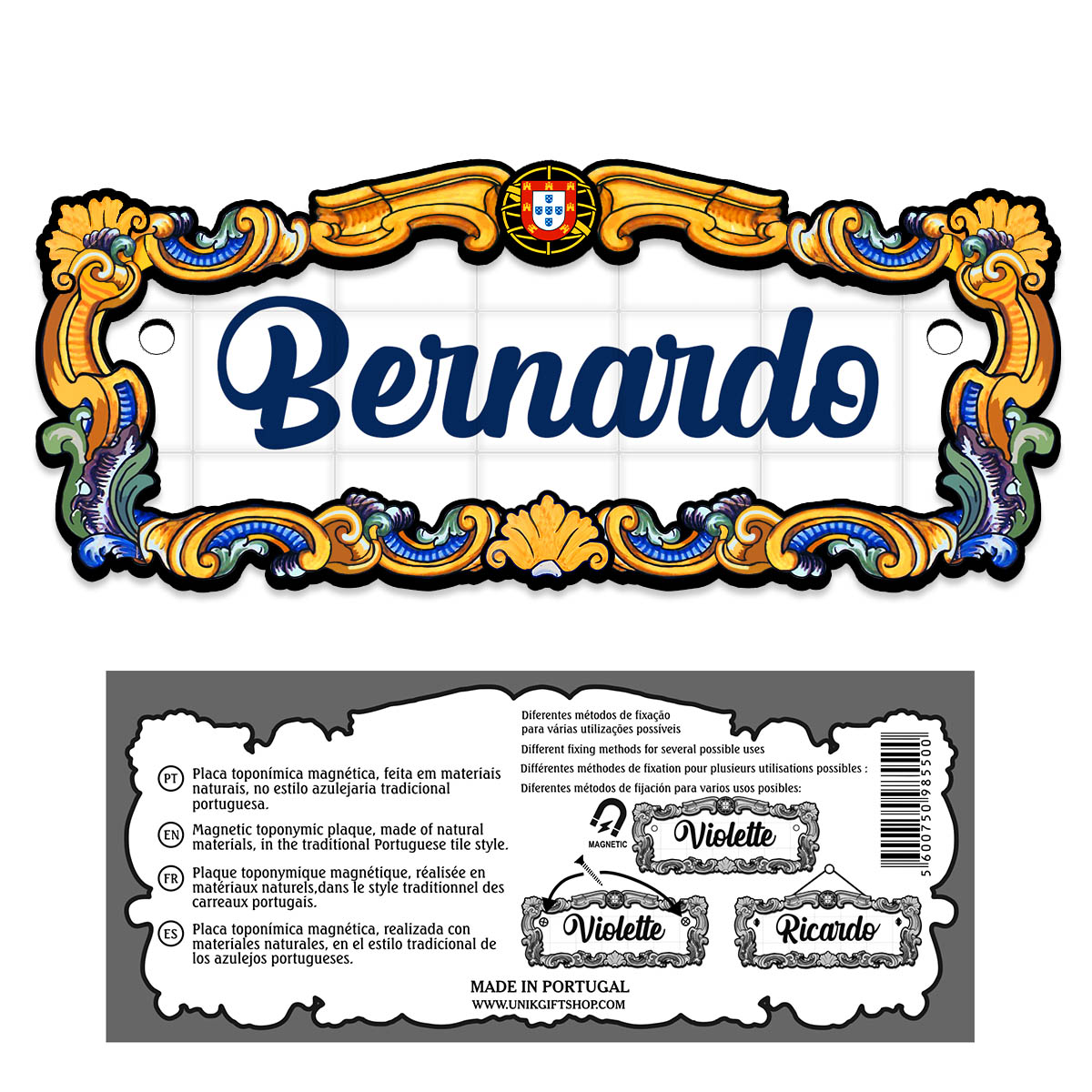 Magnetic toponymic plaque, made of natural materials, in the traditional Portuguese tile style, 14x6cm.