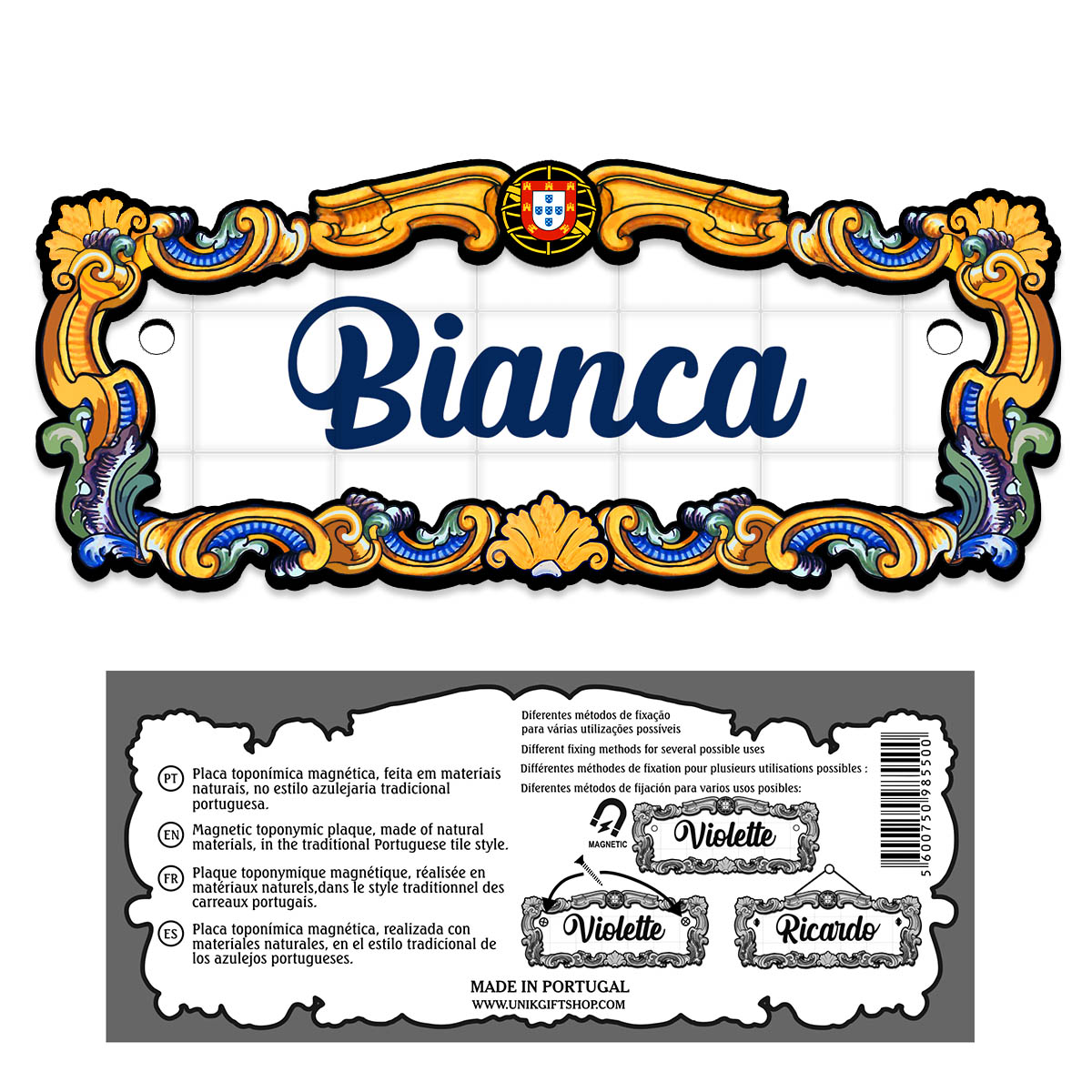 Magnetic toponymic plaque, made of natural materials, in the traditional Portuguese tile style, 14x6cm.