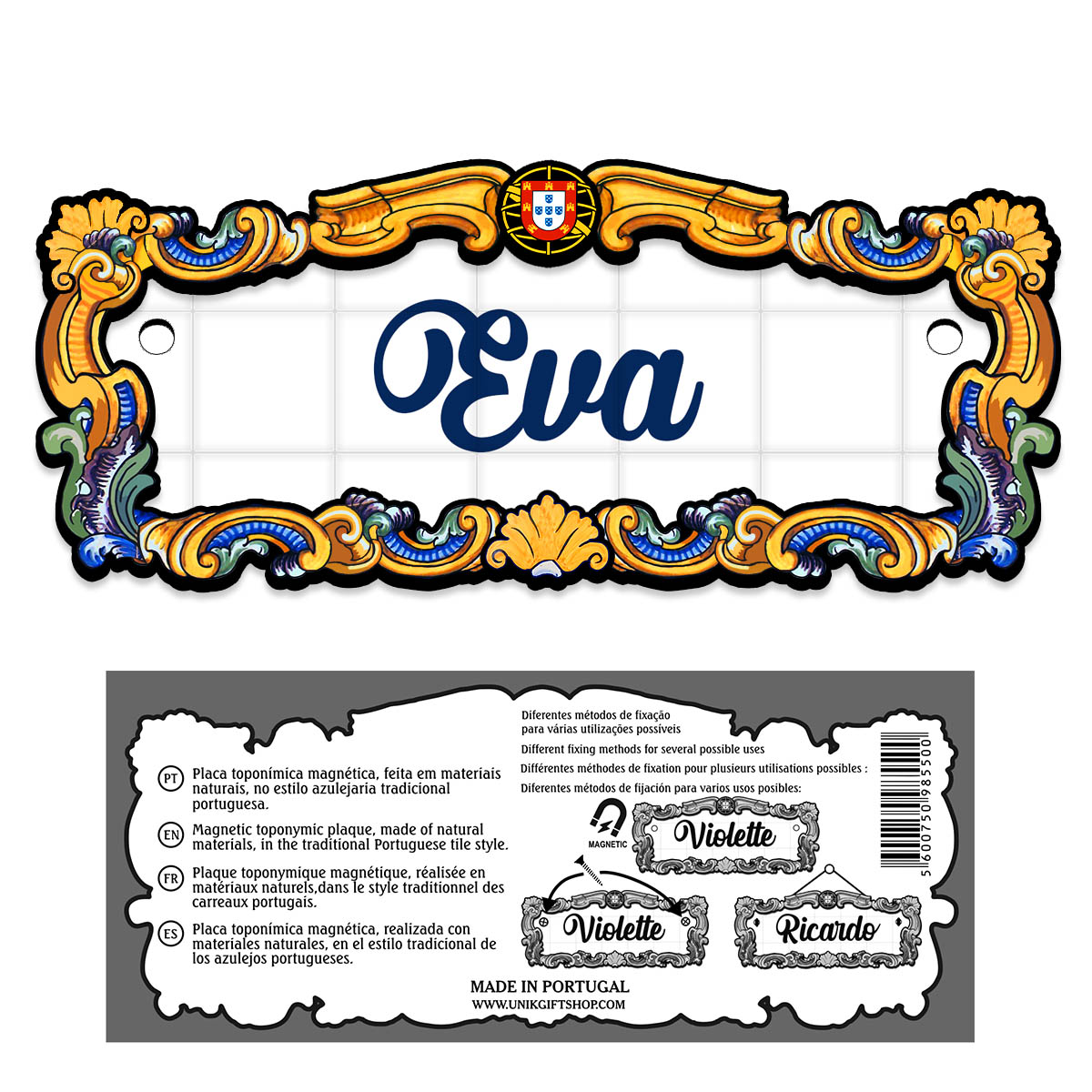 Magnetic toponymic plaque, made of natural materials, in the traditional Portuguese tile style, 14x6cm.