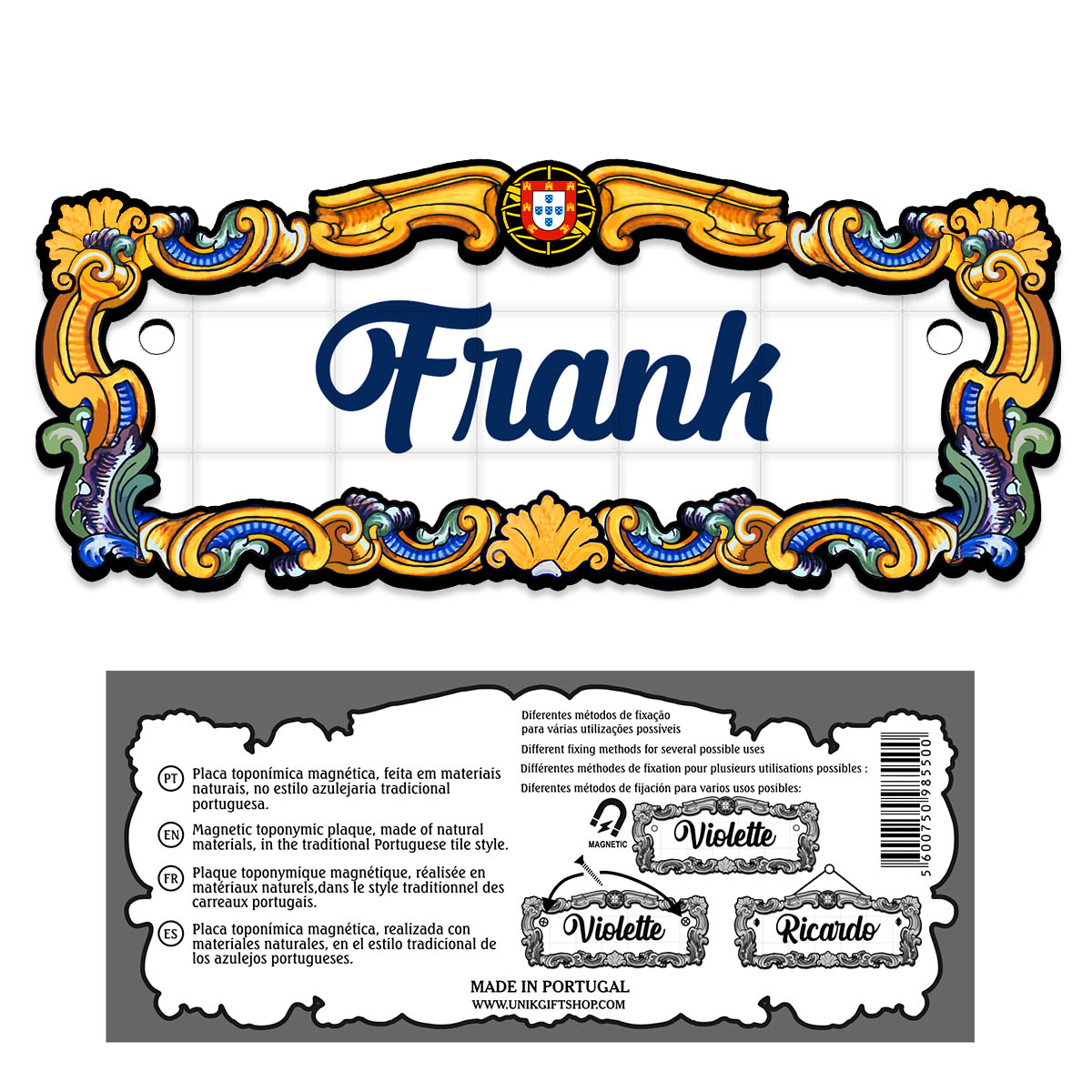 Magnetic toponymic plaque, made of natural materials, in the traditional Portuguese tile style, 14x6cm.