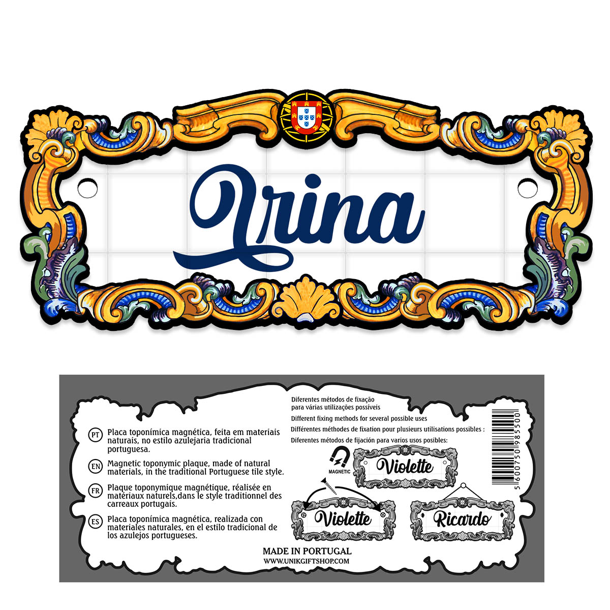 Magnetic toponymic plaque, made of natural materials, in the traditional Portuguese tile style, 14x6cm.