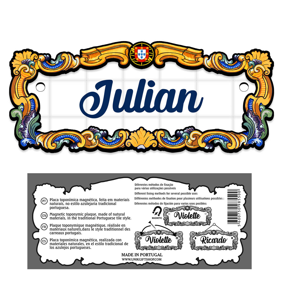 Magnetic toponymic plaque, made of natural materials, in the traditional Portuguese tile style, 14x6cm.