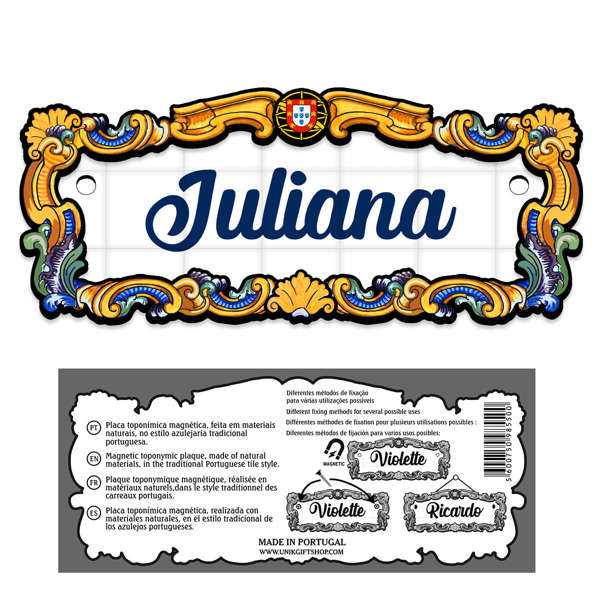 Magnetic toponymic plaque, made of natural materials, in the traditional Portuguese tile style, 14x6cm.