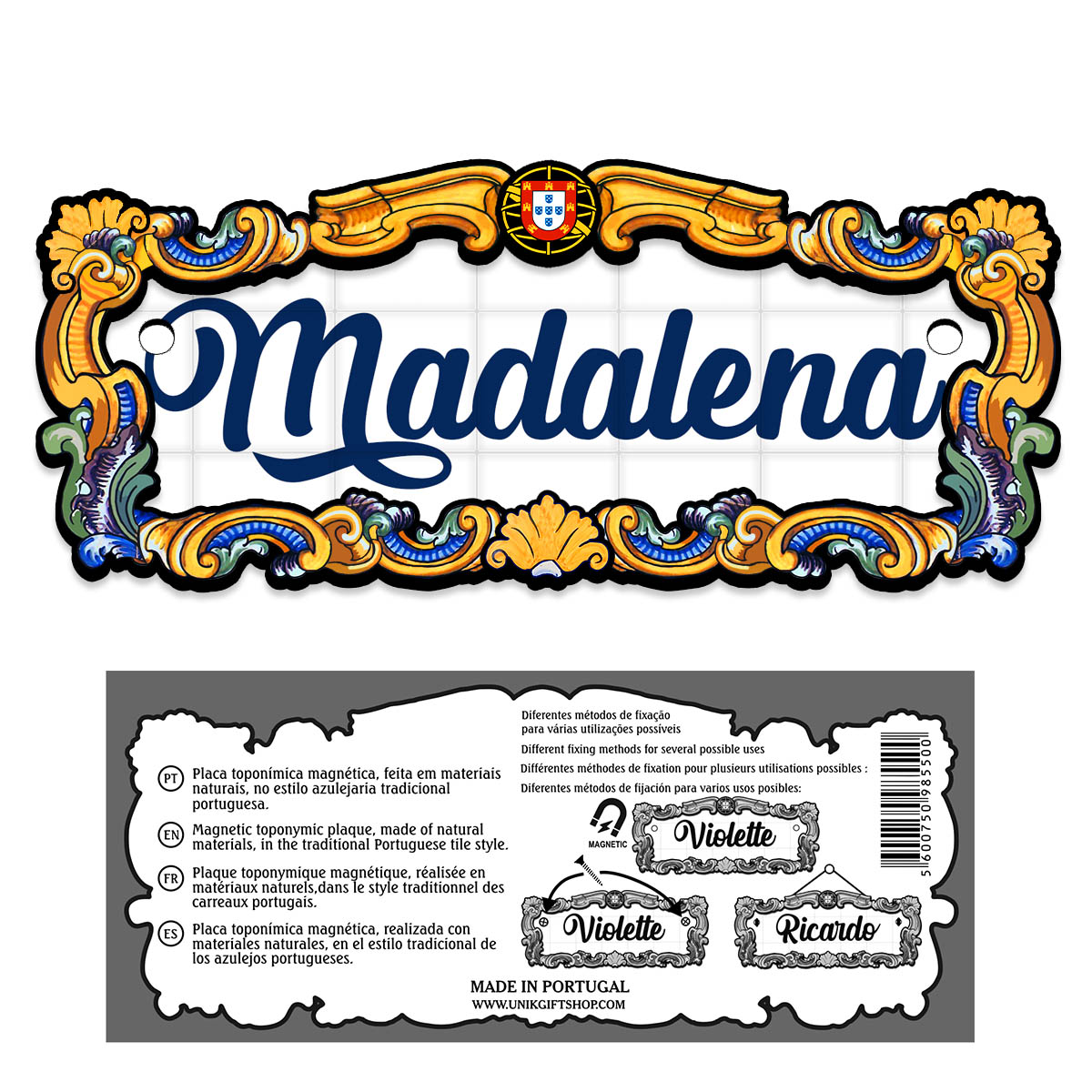 Magnetic toponymic plaque, made of natural materials, in the traditional Portuguese tile style, 14x6cm.