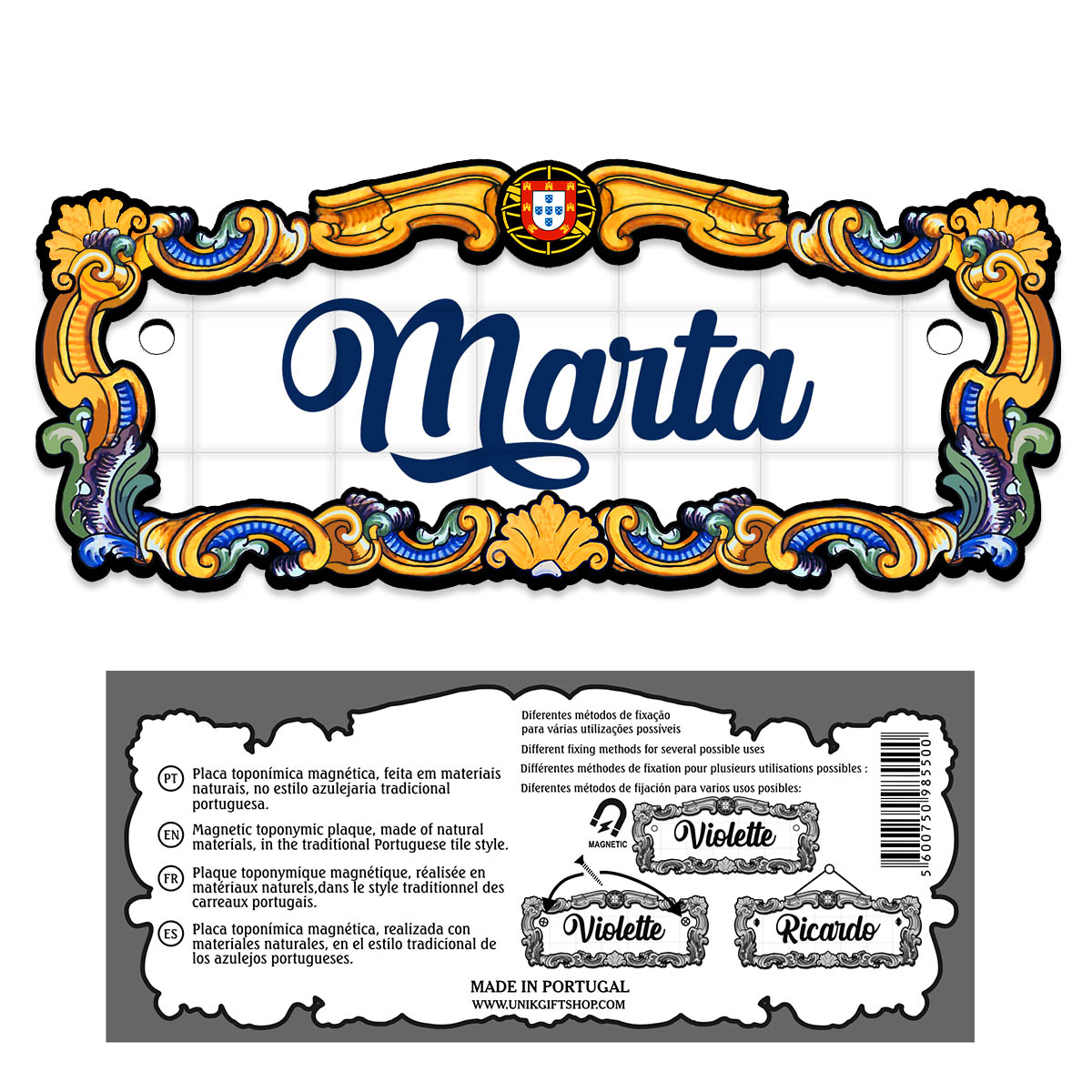 Magnetic toponymic plaque, made of natural materials, in the traditional Portuguese tile style, 14x6cm.