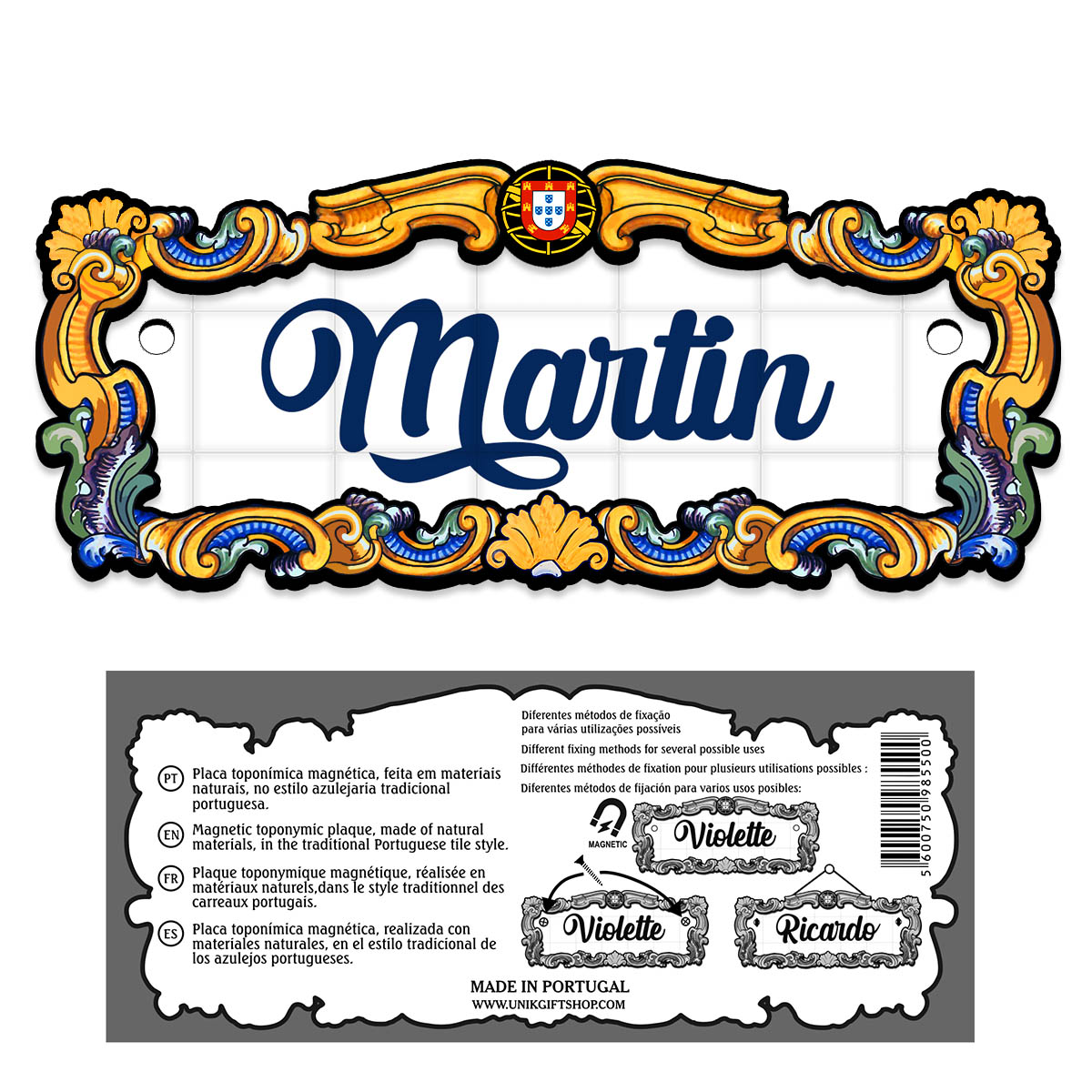 Magnetic toponymic plaque, made of natural materials, in the traditional Portuguese tile style, 14x6cm.