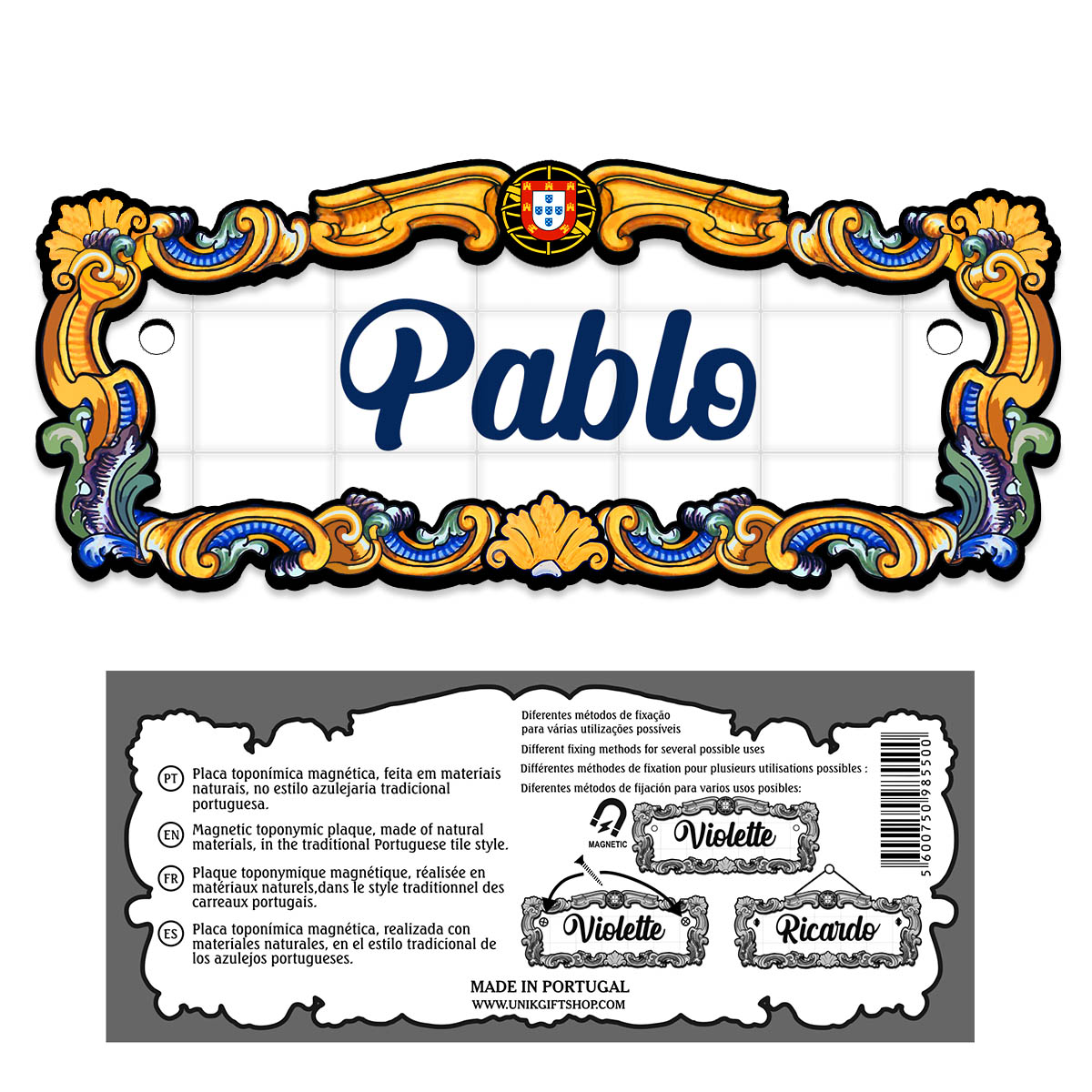 Magnetic toponymic plaque, made of natural materials, in the traditional Portuguese tile style, 14x6cm.