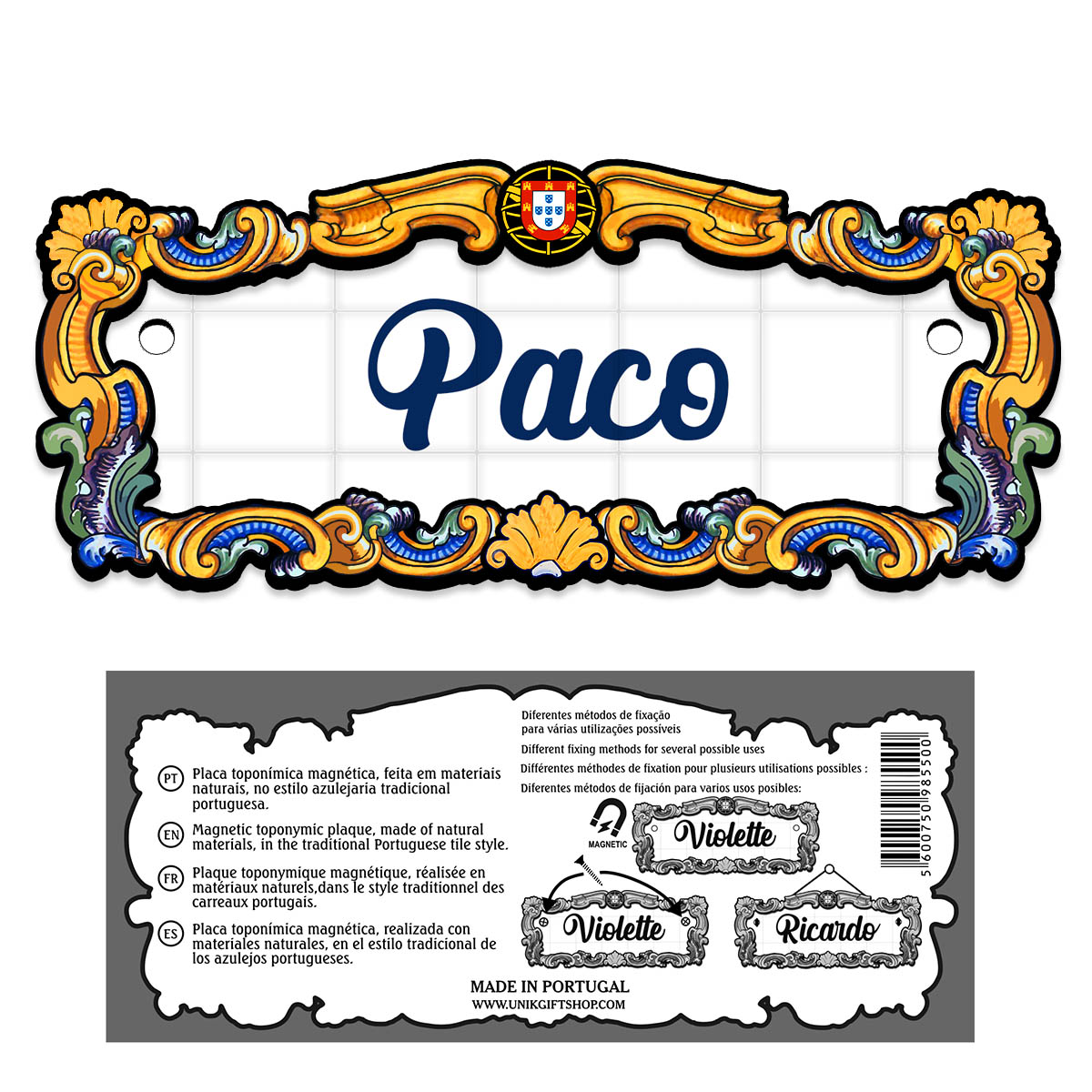 Magnetic toponymic plaque, made of natural materials, in the traditional Portuguese tile style, 14x6cm.
