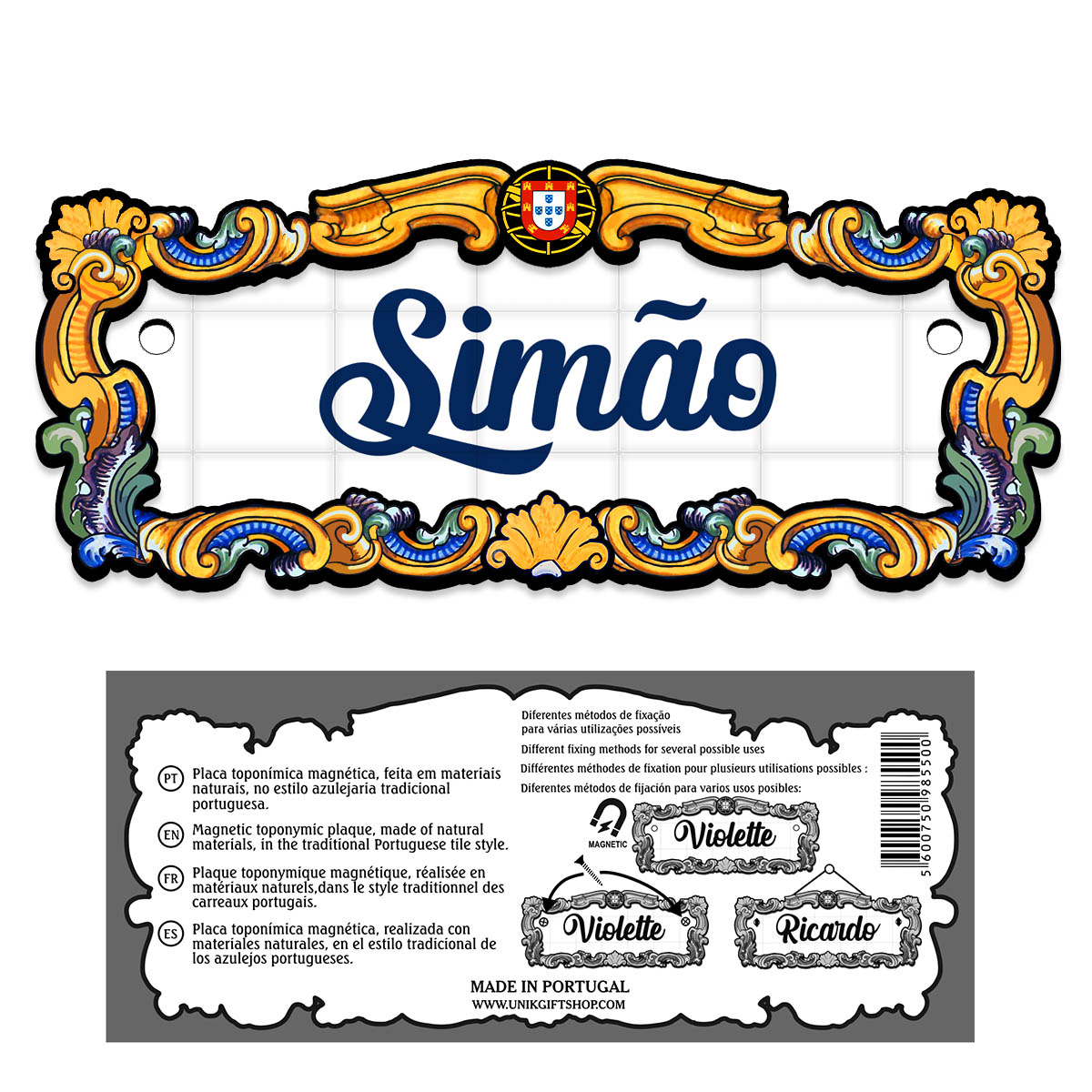 Magnetic toponymic plaque, made of natural materials, in the traditional Portuguese tile style, 14x6cm.