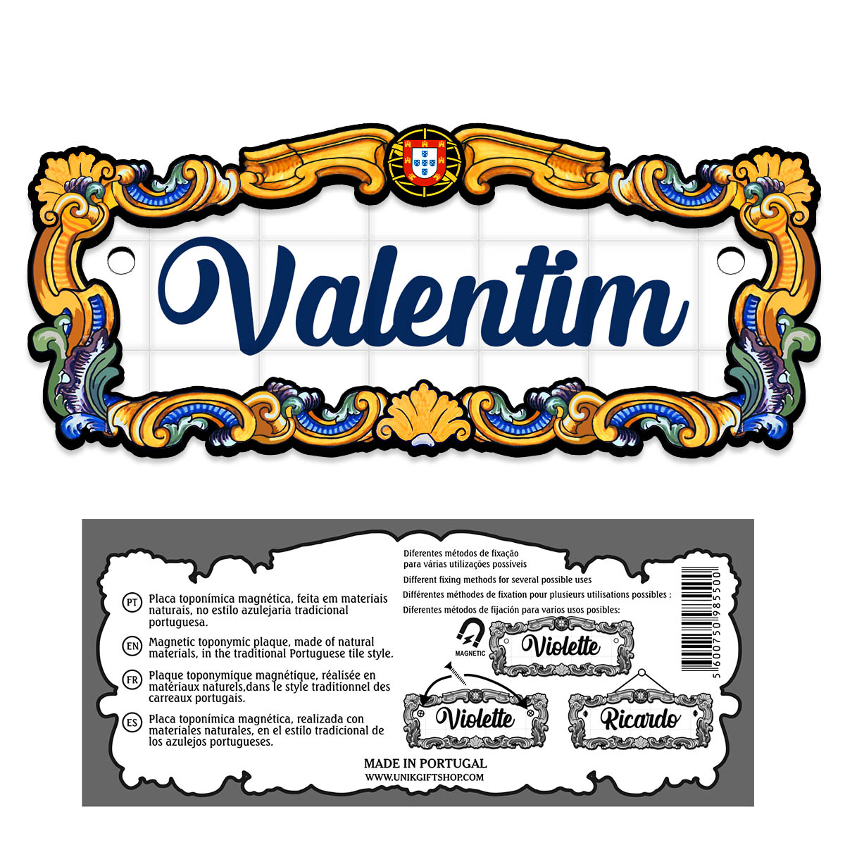 Magnetic toponymic plaque, made of natural materials, in the traditional Portuguese tile style, 14x6cm.