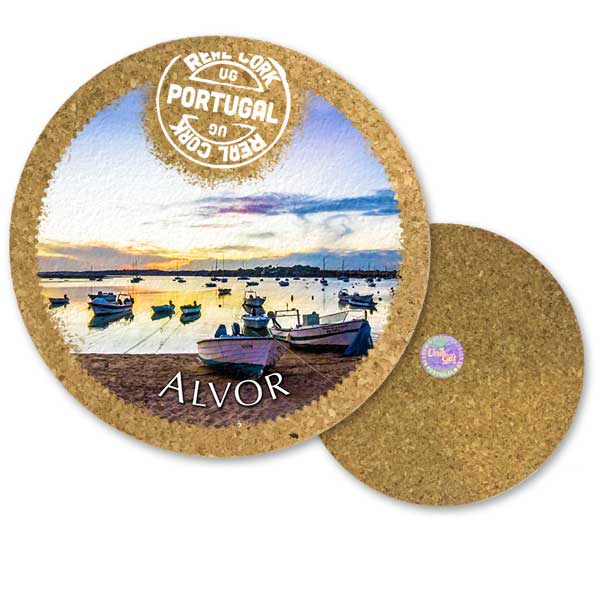 Round base for pans, in cork agglomerate of 195mm x 10mm, printed.