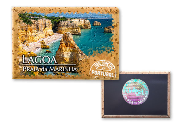 Magnetic with Portuguese natural cork finish, with high quality printing. Individual packaging and holographic seal "Made in Portugal".