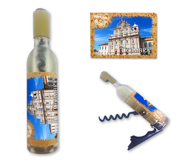 Magnetic in 11,5x2,5cm, bottle format, with capsule openers and corkscrews. Application of printed natural cork, in individual packaging.