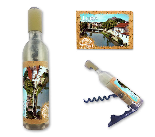 Magnetic in 11,5x2,5cm, bottle format, with capsule openers and corkscrews. Application of printed natural cork, in individual packaging.