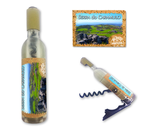 Magnetic in 11,5x2,5cm, bottle format, with capsule openers and corkscrews. Application of printed natural cork, in individual packaging.