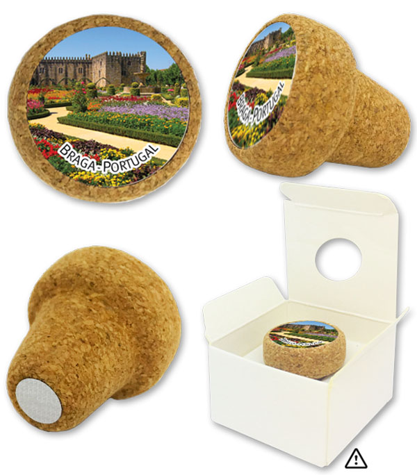 Magnetic cork stopper with metal plate illuation diam. 26mm. Presentation box not included.