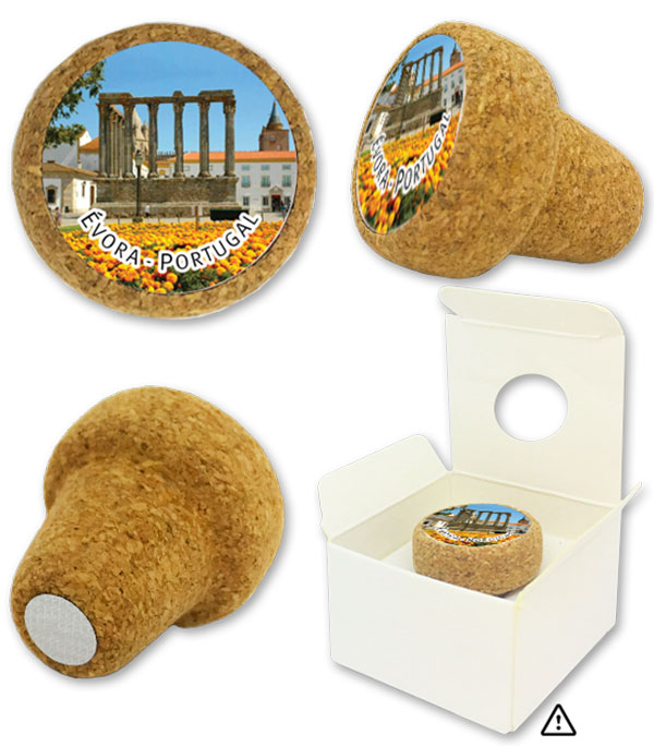 Magnetic cork stopper with metal plate illuation diam. 26mm. Presentation box not included.