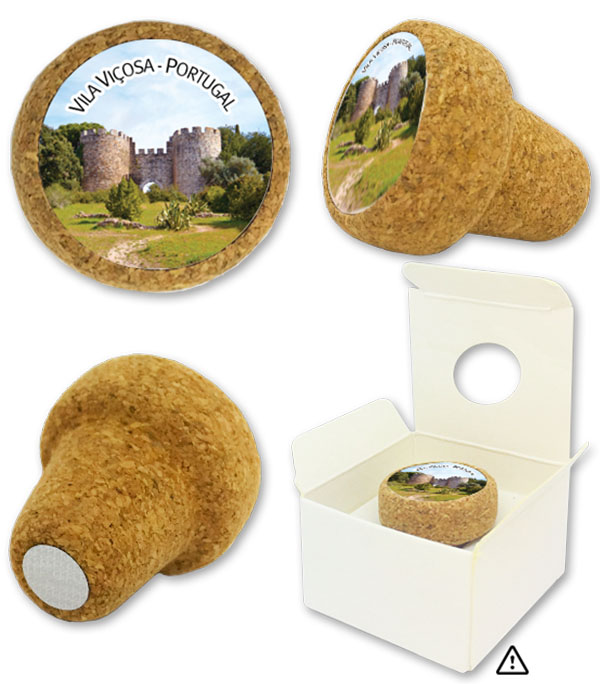 Magnetic cork stopper with metal plate illuation diam. 26mm. Presentation box not included.