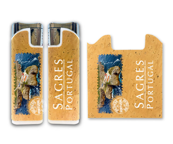 Rechargeable lighter with printed natural cork lining.