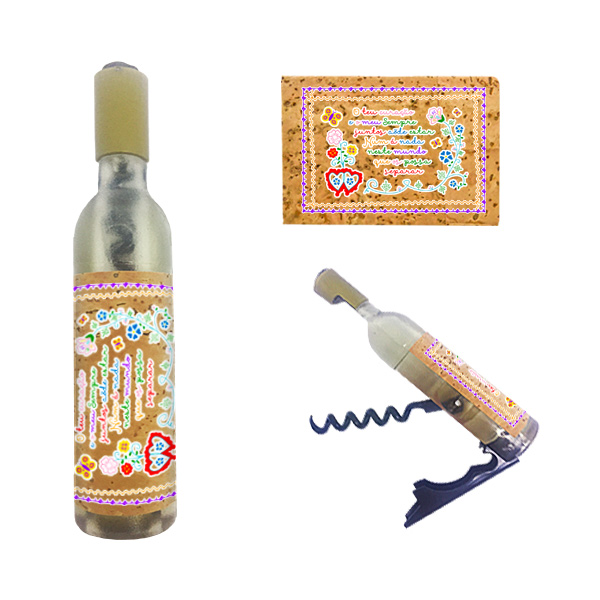 Typical theme of northern Portugal, characterized by misspelling poetry, bright colors and quotidian symbols. Magnetic in 11,5x2,5cm, bottle format, with capsule openers and corkscrews. Application of printed natural cork, in individual packaging.