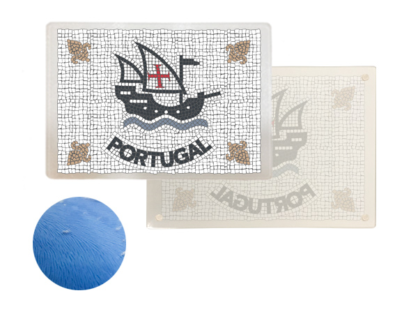 Portuguese symbols, reinterpreted in the shape of the typical Portuguese pavement. Cut glass base 29x20cm, with individual carton packaging.