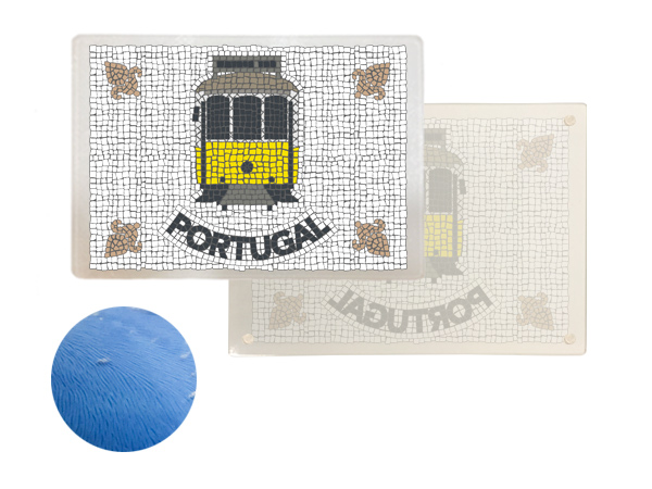 Portuguese symbols, reinterpreted in the shape of the typical Portuguese pavement. Cut glass base 29x20cm, with individual carton packaging.