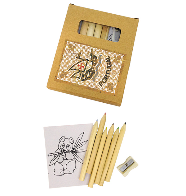 Portuguese symbols, reinterpreted in the shape of the typical Portuguese pavement. Box square pencil 7x9cm, with 6 colored pencils, pencil sharpener, color block and colored illustration in cork.