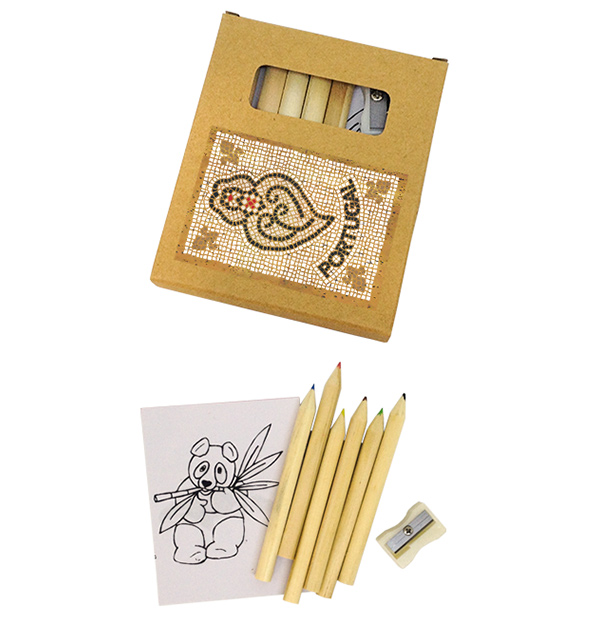 Portuguese symbols, reinterpreted in the shape of the typical Portuguese pavement. Box square pencil 7x9cm, with 6 colored pencils, pencil sharpener, color block and colored illustration in cork.