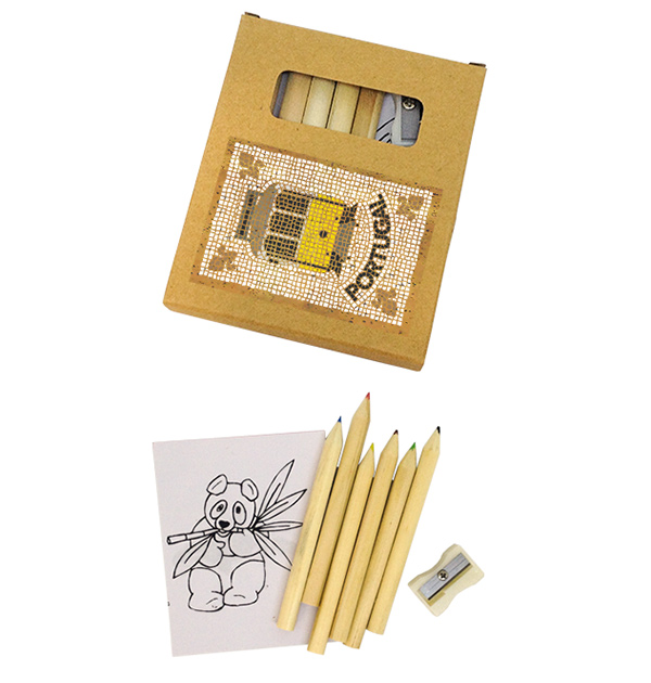 Portuguese symbols, reinterpreted in the shape of the typical Portuguese pavement. Box square pencil 7x9cm, with 6 colored pencils, pencil sharpener, color block and colored illustration in cork.