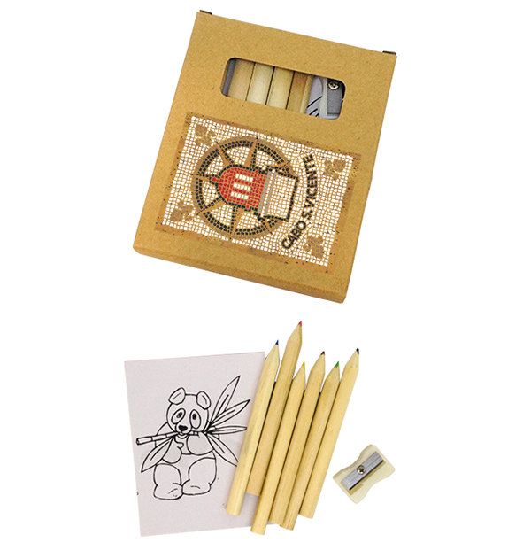 Portuguese symbols, reinterpreted in the shape of the typical Portuguese pavement. Box square pencil 7x9cm, with 6 colored pencils, pencil sharpener, color block and colored illustration in cork.