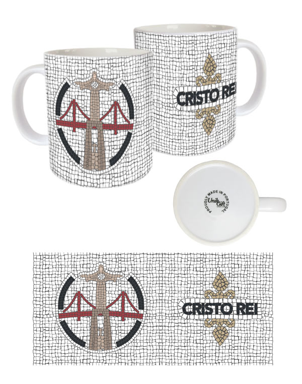 Portuguese symbols, reinterpreted in the shape of the typical Portuguese pavement. White Bright White Ceramic Mug, 11oz, 9.7cm x8.2cm diam. Without individual box.