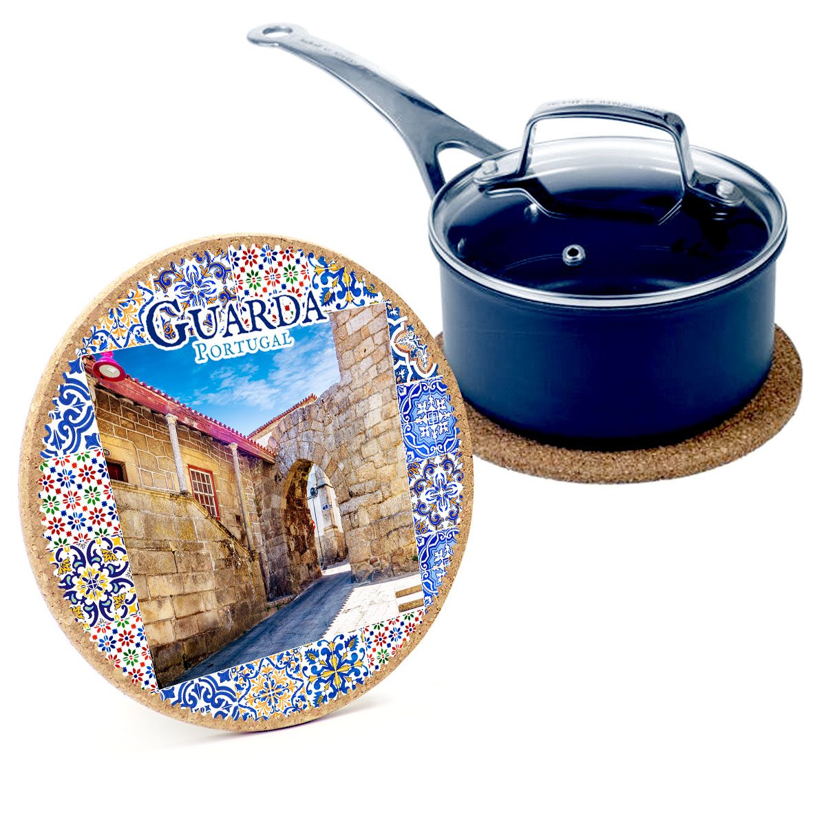 Round base for pans, in cork agglomerate of 195mm x 10mm, printed.