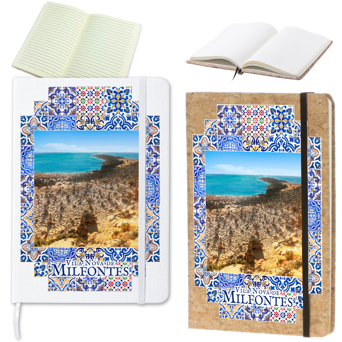 Notepad with hard cover. Notepad size 14 x 21 x 1.5 cm | 240 gr. , 80 sheets. Available with a textile or natural cork finish.