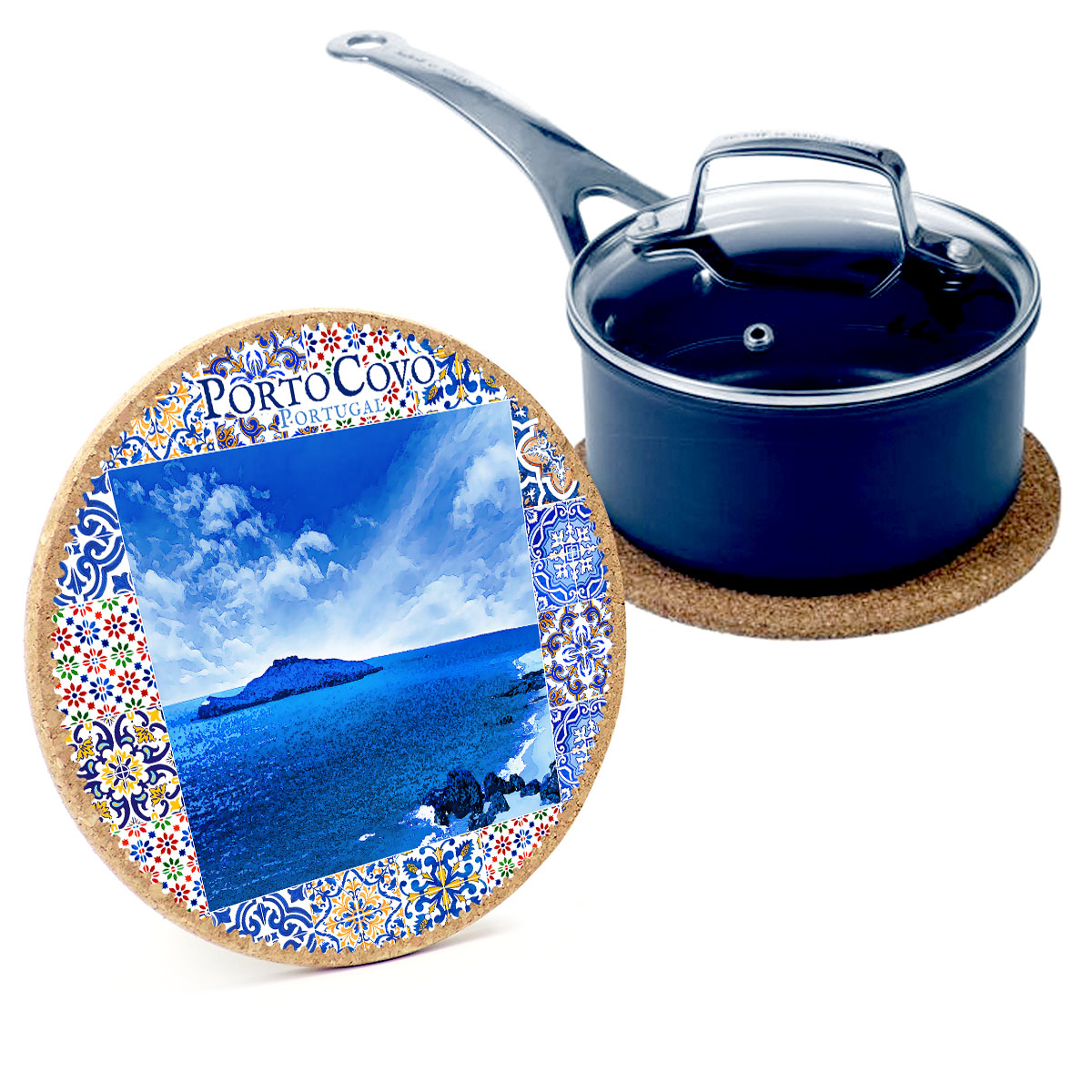 Round base for pans, in cork agglomerate of 195mm x 10mm, printed.