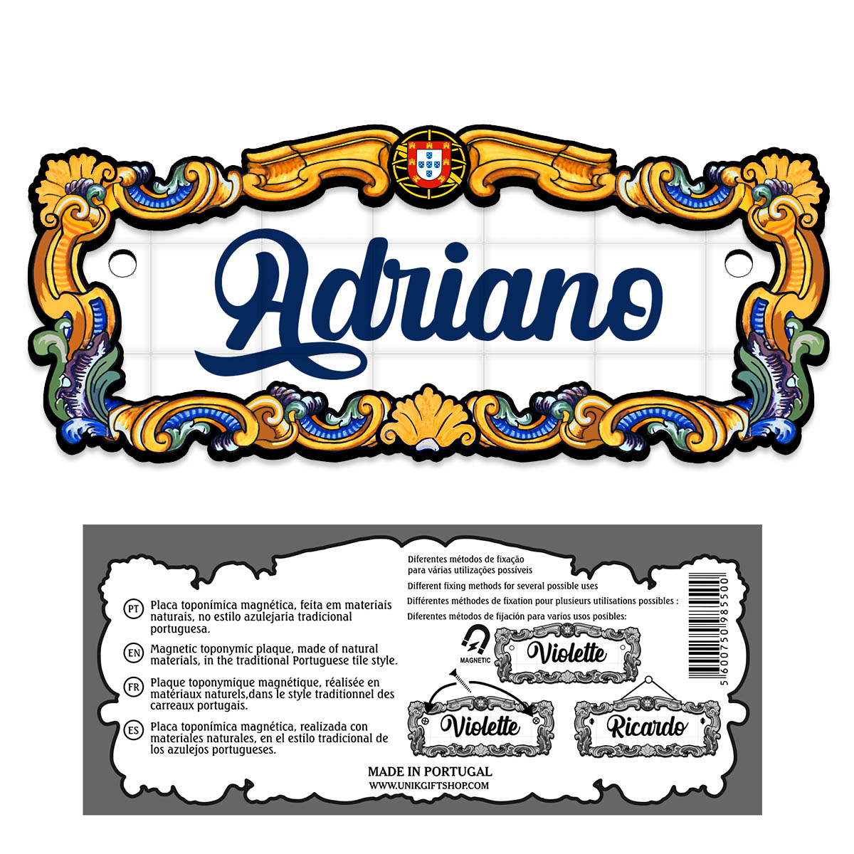 Magnetic toponymic plaque, made of natural materials, in the traditional Portuguese tile style, 14x6cm.