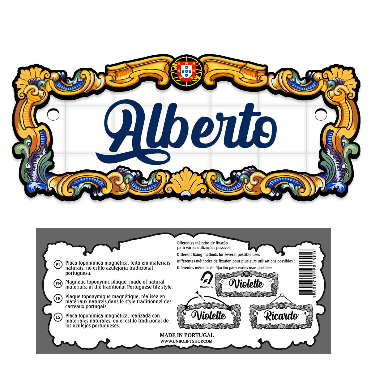 Magnetic toponymic plaque, made of natural materials, in the traditional Portuguese tile style, 14x6cm.
