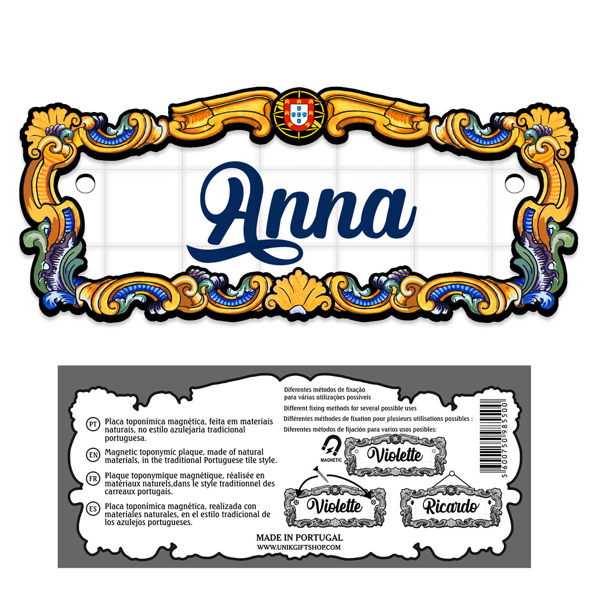 Magnetic toponymic plaque, made of natural materials, in the traditional Portuguese tile style, 14x6cm.