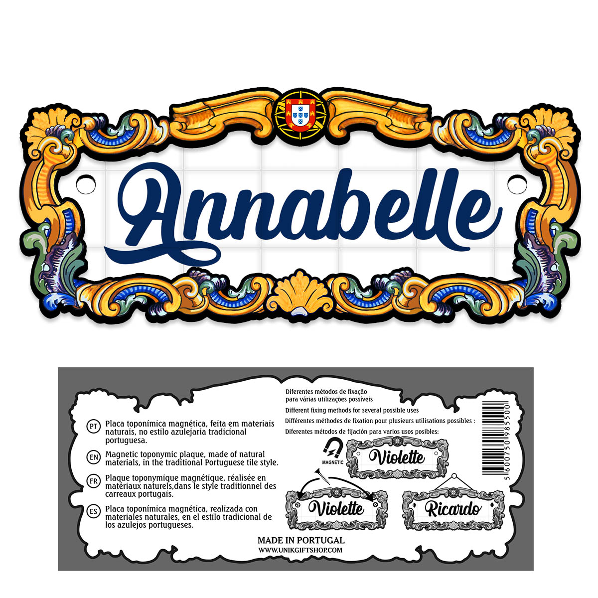 Magnetic toponymic plaque, made of natural materials, in the traditional Portuguese tile style, 14x6cm.