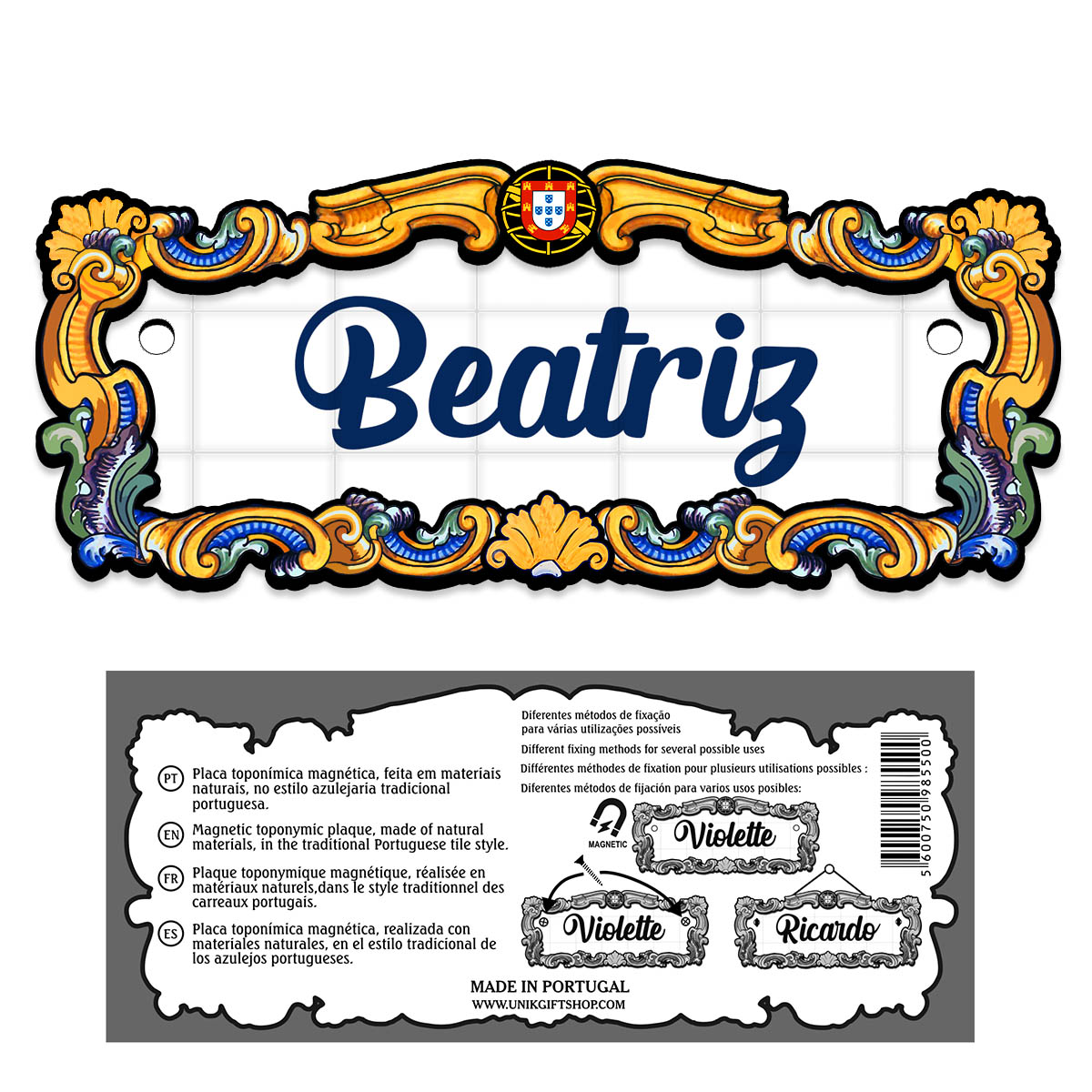 Magnetic toponymic plaque, made of natural materials, in the traditional Portuguese tile style, 14x6cm.