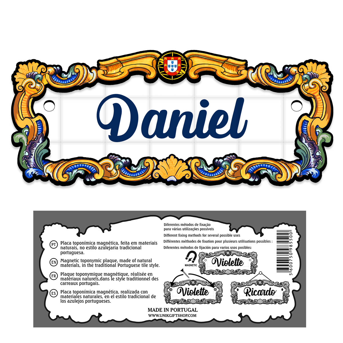 Magnetic toponymic plaque, made of natural materials, in the traditional Portuguese tile style, 14x6cm.